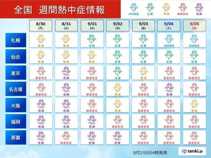 週間天気予報 9月になると曇りや雨の日多く 猛暑は落ち着く 8月31日 火 9月6日 月 ウェザーニュース